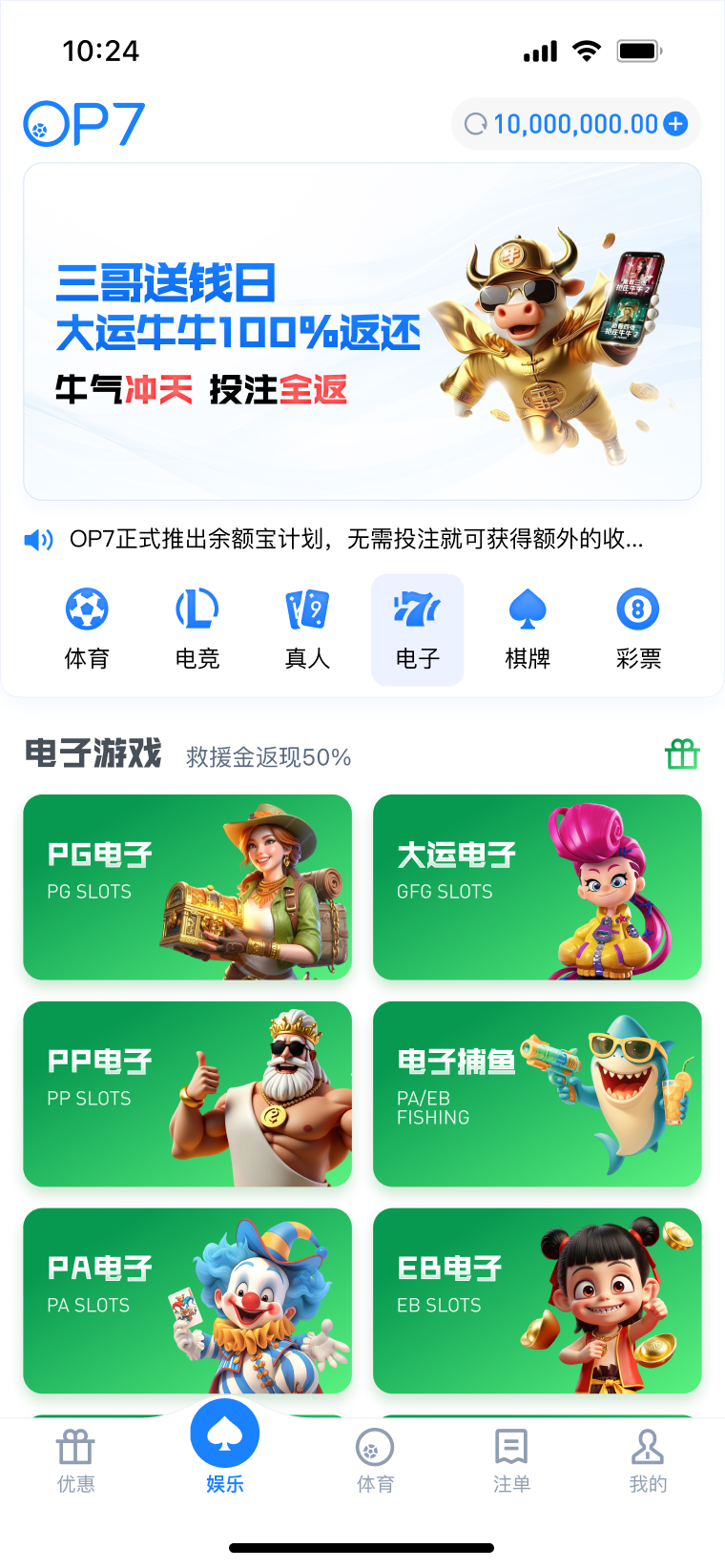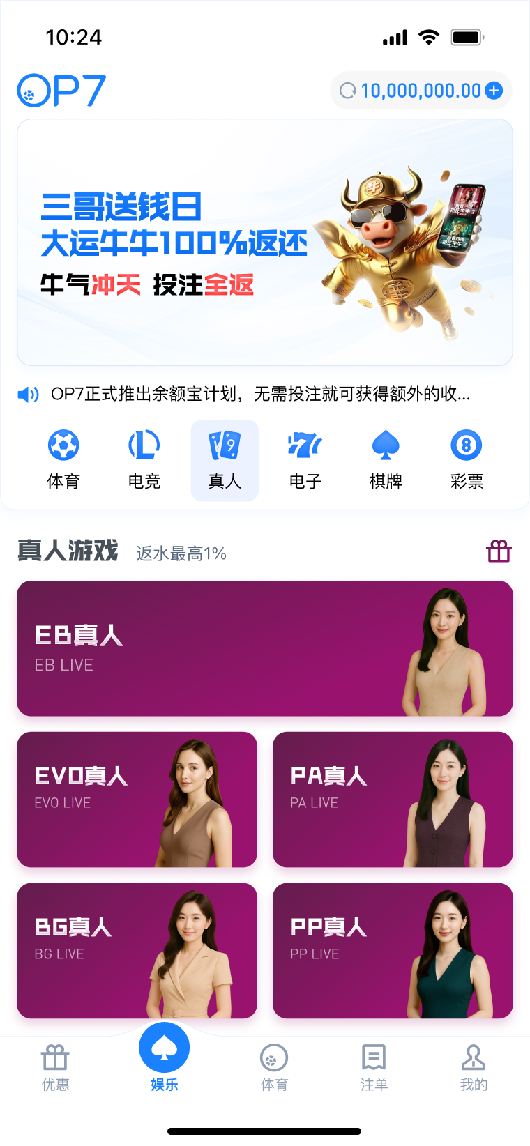 OP7祝全体会员佳节纳千祥,福运聚万金!活动期间,在指定节日期间登录活动页面即可领取免费抽奖次数,累计最高可获得5次!马不停蹄转好运,100%中奖率,最高领取888元彩金!详情请查看官网活动页面。